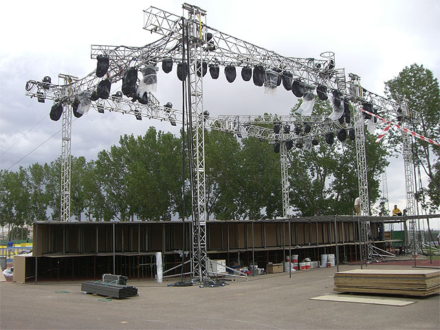 Hace unos días comenzó el montaje del escenario que acogerá las actuaciones del próximo domingo. Este año, el escenario se ha diseñado con formas ovaladas, y tendrá unas medidas de 600 metros cuadrados, lo que le hace el más grande construido respecto a ediciones anteriores, incorporando una pantalla de leds de 5,30 metros de ancho por 3,70 metros de alto.