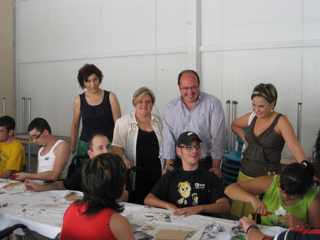 La directora del Instituto de la Juventud de la Región de Murcia, Verónica López, acompañada del alcalde del Ayuntamiento de Puerto Lumbreras, Pedro Antonio Sánchez, visitó esta mañana, a los treinta y cinco jóvenes que participan en el campamento de verano organizado por la Federación de Asociaciones Murcianas de Personas con Discapacidad Física y Orgánica, Famdif/Cocemfe, junto con la asociación Auxilia-Murcia.