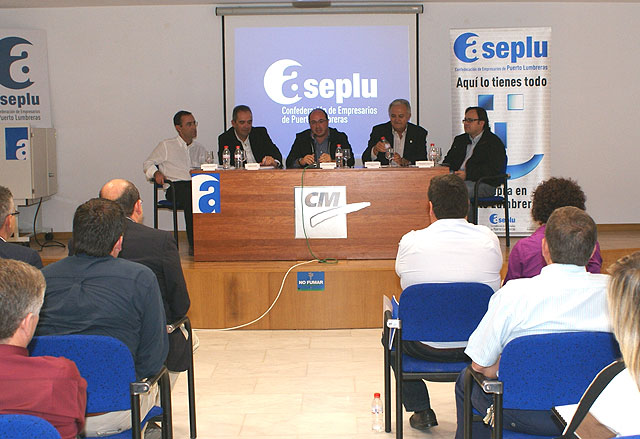 El Alcalde de Puerto Lumbreras, Pedro Antonio Sánchez, junto al presidente de la Confederación de Empresarios, Francisco Sosa, ha presidido la Asamblea General de ASEPLU. Al acto, celebrado en el Aula de Cajamurcia, han acudido numerosos empresarios asociados a la Confederación, además de representantes del equipo de gobierno del Ayuntamiento de Puerto Lumbreras o el presidente de la Cámara de Comercio de Lorca y Puerto Lumbreras, Eusebio Abellán.
