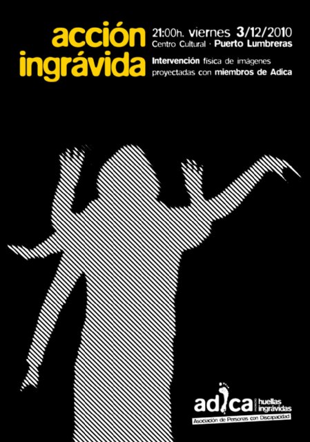 La Asociación de Personas con Discapacidad de Puerto Lumbreras, Adica, presenta en su cuarta edición de Liberarte, y con motivo de la celebración de su día internacional, la intervención artística Huellas Ingrávidas. Un proyecto que tiene como objetivo plantear un espacio de diálogo entorno al concepto de “discapacidad” a través de la creación.