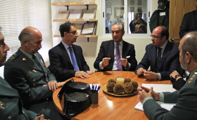 Fernández de Mesa se ha reunido con el Alcalde del municipio, Pedro Antonio Sánchez, con el delegado del Gobierno en la Región de Murcia, Joaquín Bascuñana, así como con representantes de los cuerpos de seguridad y emergencias en el municipio, para analizar los trabajos en materia de seguridad que se están desarrollando en el municipio.