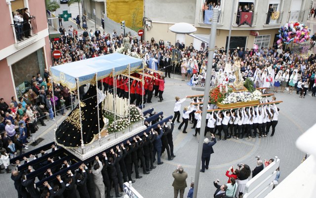 Esta mañana ha tenido lugar la tradicional procesión del encuentro entre La Virgen de los Dolores, la imagen del Señor Resucitado y San Juan Evangelista. La procesión ha sido organizada por la Cofradía de la Stma. Virgen de los Dolores y es la última de las que se celebran en Puerto Lumbreras con motivo de su Semana Santa.