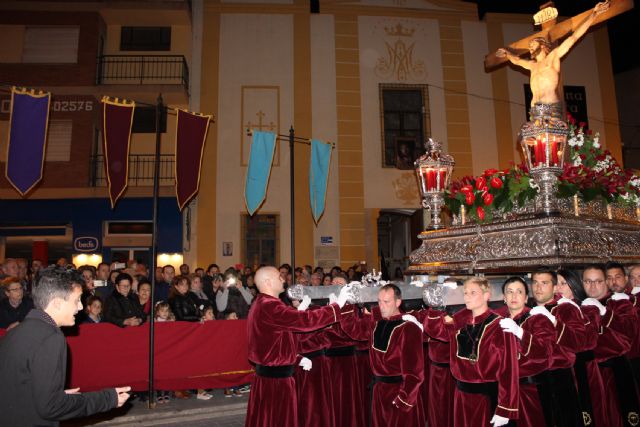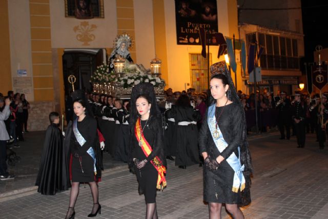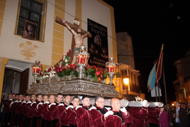 El municipio de Puerto Lumbreras celebró anoche la solemne y emotiva procesión del Silencio, en la que desfiló la imagen del Santísimo Cristo de la Fe y la de María Santísima de la Piedad, esta última a hombros de 40 costaleras.