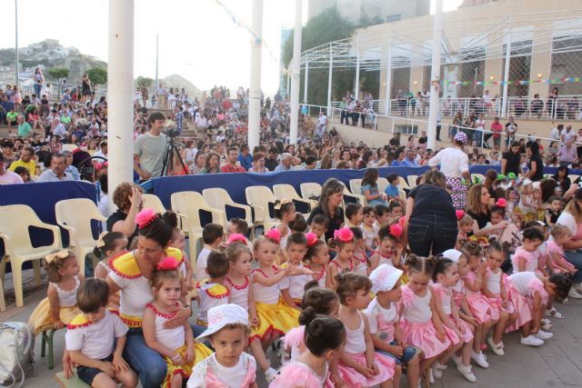 El patio del Centro Cultural fue escenario el pasado jueves de la fiesta de graduación de 103 niños y niñas de 2 y 3 años, divididos en siete grupos de las cuatro escuelas infantiles de Puerto Lumbreras: Buenaventura Romera, Ana María Sánchez, Juan López y La Estación-Esparragal. En torno a las 20:30 horas arrancó un divertido y emotivo acto, que contó con diversas actividades y actuaciones a cargo de los propios pequeños coordinados por sus maestros y maestras, y bailes bajo la temática "Eurovisión", y que llenó las gradas del patio del Centro Cultural de familiares, amigos y vecinos. Un acto que contó con la presencia de la alcaldesa; María Ángeles Túnez, así como varios concejales del nuevo equipo de Gobierno municipal.