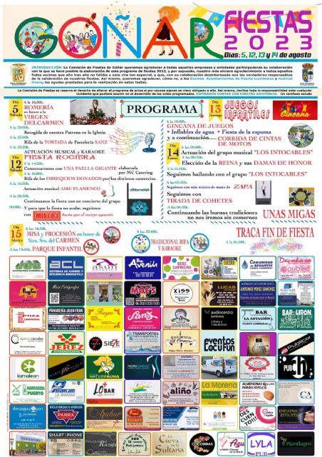 El concejal de Festejos del Ayuntamiento de Puerto Lumbreras, Juan Rubén Burrueco, ha informado de las fiestas patronales que comienzan en la pedanía de Góñar.