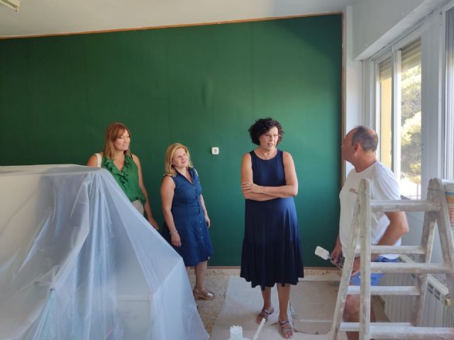 La concejala de Educación del Ayuntamiento de Puerto Lumbreras, Juana María Pérez, y la alcaldesa de Puerto Lumbreras, María Ángeles Túnez, han visitado los trabajos de mejora que se están llevando a cabo durante todo el verano en todos los centros educativos del municipio.