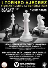 17/10/2024 La primera edición del Torneo de Ajedrez 'Fiestas de Puerto Lumbreras' tendrá lugar el sábado, 18 de octubre, en el Espacio Joven del municipio