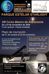 18/10/2024 El Observatorio Astronómico 'Cabezo de la Jara' acoge el 'VIII Curso de Iniciación a la Astronomía' los días 22 y 23 de noviembre