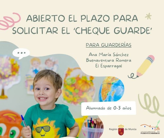 La concejal de Educación del Ayuntamiento de Puerto Lumbreras, Juana María Pérez, ha informado de la apertura de la convocatoria para solicitar la ayuda 'cheque guarde' para el curso 2024-2025.