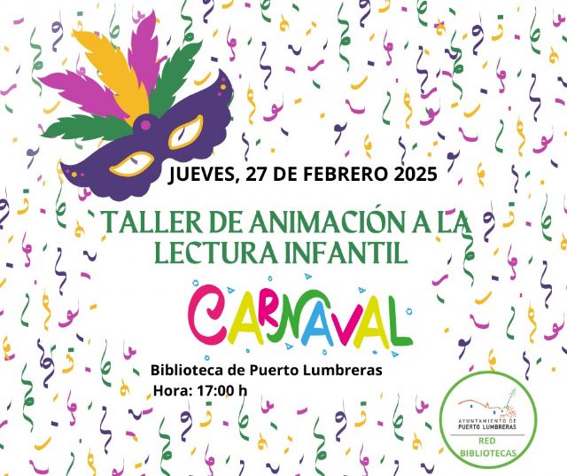 La concejal de Cultura del Ayuntamiento de Puerto Lumbreras, Toñi Navarro, ha informado del taller de animación a la lectura infantil con temática de Carnaval.