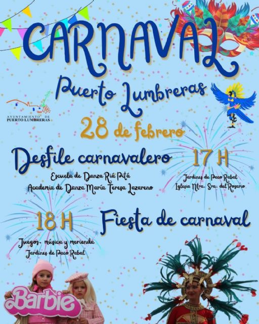 Túnez ha explicado que "el próximo viernes, 28 de febrero, Puerto Lumbreras celebrará el Carnaval a lo grande. Las calles del municipio se llenarán de música y color con un desfile carnavalero en el que participarán la Escuela de Danza Riá Pitá y la Academia de Danza María Teresa Lazareno".