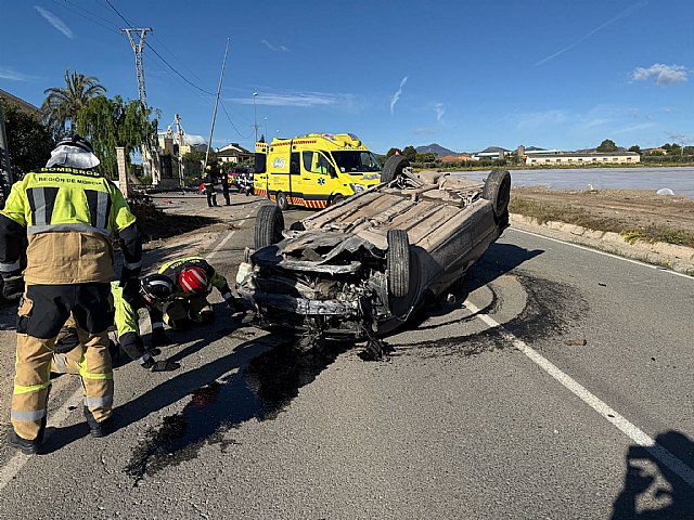 Servicios de emergencia han atendido y trasladado al hospital a tres heridos al volcar un vehículo en la carretera RM-D16 (El Esparragal – La Estación), en Puerto Lumbreras.
