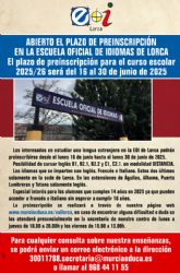 24/06/2025 La sede de Puerto Lumbreras de la Escuela Oficial de Idiomas abre el plazo de preinscripción para cursar estudios de inglés en el municipio