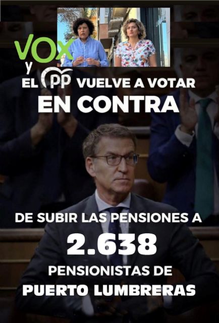 El Partido Popular ha votado en contra de la subida de las pensiones aprobada por el Gobierno de España. Esta decisión afecta directamente a los 2.638 pensionistas de Puerto Lumbreras y pone en peligro una subida del 2,7% que ya habían empezado a cobrar y que debería mantenerse a partir del mes de febrero.