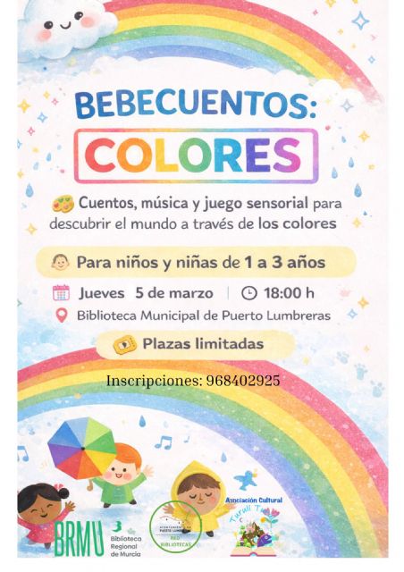 La concejal de Cultura del Ayuntamiento de Puerto Lumbreras, Toñi Navarro, ha anunciado la celebración de la actividad 'Bebecuentos: colores' en la Biblioteca Municipal.