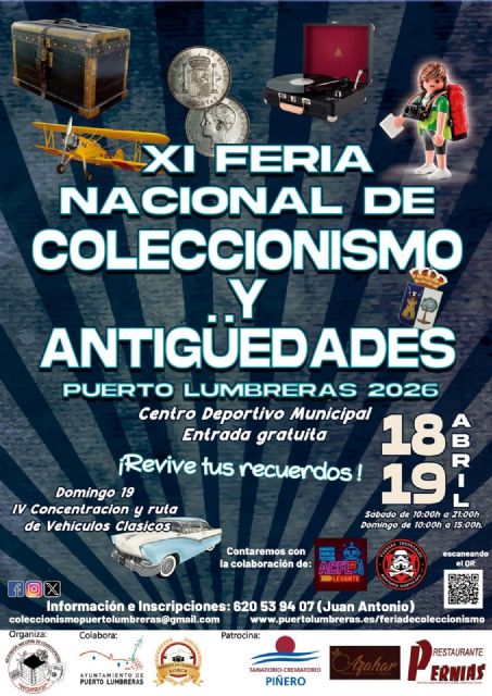 Por último, María de los Ángeles Túnez ha querido "invitar a todos los amantes de las antigüedades a que el próximo fin de semana, 18 y 19 de abril, en horario de 10 a 21 horas y 10 a 15 horas respectivamente, tenemos una cita ineludible con los recuerdo y el coleccionismo en el Centro Deportivo Municipal de Puerto Lumbreras con entrada gratuita".