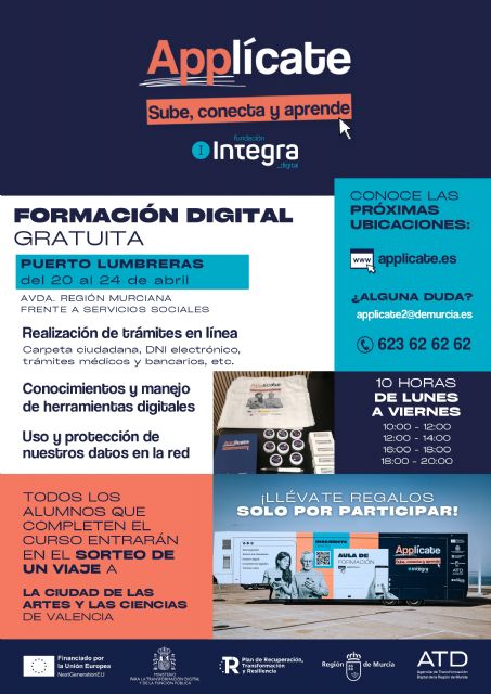 "Se trata de un programa de formación gratuita que tendrá lugar del 20 al 24 de abril en el vehículo habilitado con aulas móviles totalmente equipadas y acondicionadas que se instalará en la Avenida Región Murciana, frente a Servicios Sociales".