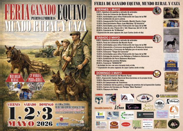 La alcaldesa de Puerto Lumbreras, María de los Ángeles Túnez, y la segunda teniente de alcalde y concejal de Pedanías, Jermary Reinaldos, ha anunciado el programa de actividades de la Feria de Ganado Equino, Mundo Rural y Caza 2026.