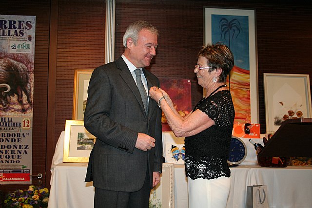 El presidente de la Comunidad, Ramón Luis Valcárcel, recibió hoy el premio Solidaridad Institucional que, en su primera edición, otorga la Asociación de Familiares de Enfermos de Alzheimer de la Región de Murcia (Afamur).