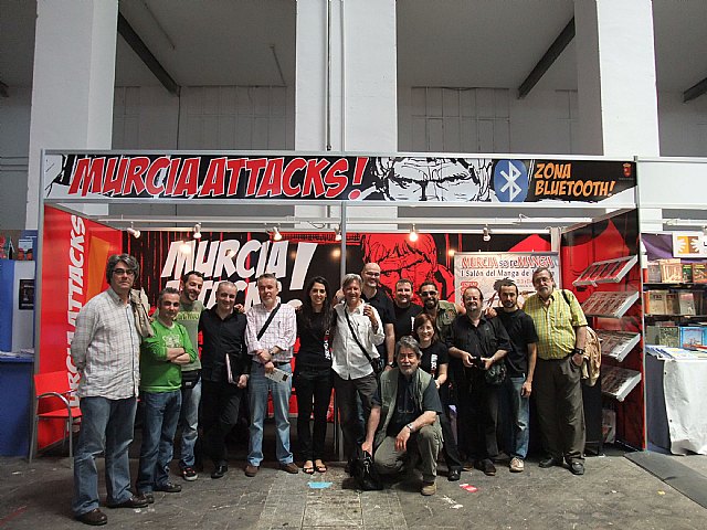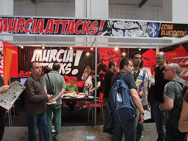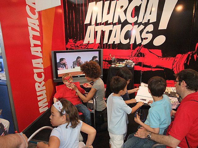 El stand ‘Murciaattacks!’ que ha llevado la Consejería de Cultura y Turismo al Salón del Cómic de Barcelona ha recibido numerosas visitas durante el día de hoy, a lo largo del cual está previsto que autores murcianos como Juan Álvarez, Juan Manuel Puebla, Santi Arcas o Salva Espín, entre otros, firmen libros. Asimismo, los visitantes podrán ser maquillados como personajes de cómics y disfrutar de una sesión de música a cargo de Hai Dj. Por otro lado, hoy, el director general del Libro, Archivos y Bibliotecas, Francisco Giménez; la directora de la Agencia de Promoción de la Cultura y las Artes, Yolanda Martínez-Pacheco, y el dibujante Juan Álvarez han presentado en rueda de prensa, ante numerosa prensa y revistas especializadas, las iniciativas que desde el Gobierno Regional se desarrollan para fomentar la lectura a través de cómic como el I Salón 'Murcia se reManga' o la nueva colección de cómic puesta en marcha desde Ediciones Tres Fronteras.