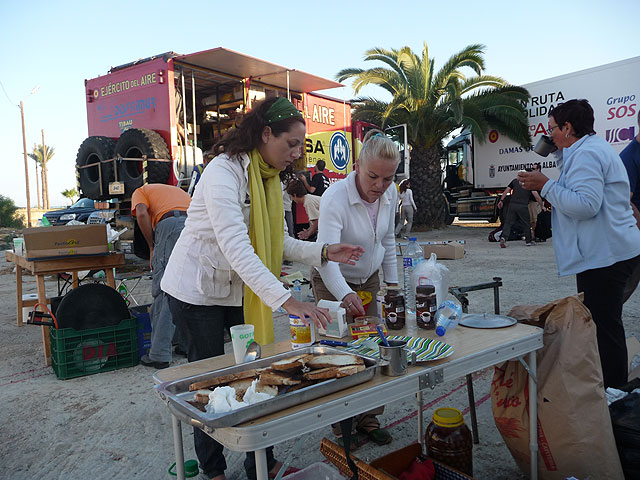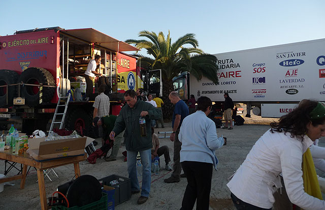 En estos dos últimos dias, el grupo ha dormido en campamentos ubicados en zonas alejadas de las poblaciones. Realizan su propia comida, organizándose en grupos de trabajo: intendencia, cocina, conductores, descarga de equipaje, limpieza, etc. Durante el día, aprovechando las horas de sol, la caravana está en carretera. Al anochecer se monta el campamento y al amanecer se desmonta.