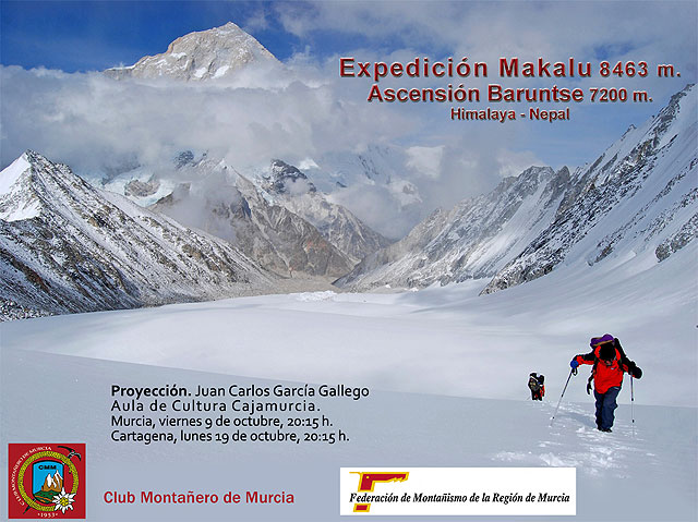 Este viernes 9 de octubre en Murcia y el lunes 19 en Cartagena, a las 20,15 h, en el aula de cultura de Cajamurcia, tendrá lugar la proyección sobre la Expedición Makalu (8463 m.) y ascensión al Baruntse 7200m.