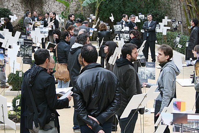 El consejero de Obras Públicas y Ordenación del Territorio, José Ballesta, acompañado por el decano del Colegio Oficial de Arquitectos de Murcia, Francisco Camino, y del gerente de la Fundación Cajamurcia, Pascual Martínez, inauguró hoy, en el convento de Las Claras de Murcia, la exposición de fotografías que muestran los trabajos galardonados en los XV Premios de Arquitectura de la Región de Murcia, un certamen que premió en 2009 las obras arquitectónicas más destacadas de la Comunidad en los dos años anteriores.
