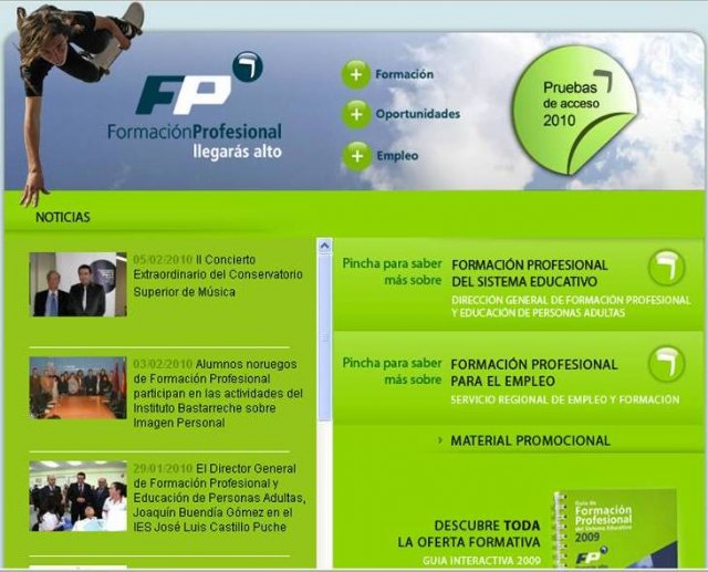 La Consejería de Educación, Formación y Empleo ha convocado las pruebas de acceso a los ciclos formativos de grado medio y superior de Formación profesional, que permitirán a los candidatos participar en el proceso de admisión para el próximo curso 2010-2011. Estas pruebas permitirán acceder a 96 titulaciones de las 21 familias profesionales que se imparten en la Región.