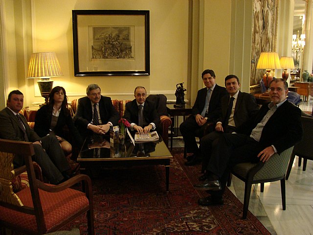 Saura se reunió hoy en el hotel Palace de Madrid con el presidente del Sindicato Central de Regantes del Acueducto Tajo-Segura (SCRTATS), José Manuel Claver, y con el vicepresidente del citado organismo, Manuel Serraro. También asistieron los diputados socialistas por la Región de Murcia, Mariano Fernández Bermejo, Javier Mármol y Sara García, y el senador Manuel Hurtado. La reunión coincidió con otra de la Comisión Constitucional sobre el Estatuto de Castilla-La Mancha que tuvo lugar en el Congreso, donde se trataban aspectos fundamentales en relación con el agua y el Trasvase Tajo-Segura.