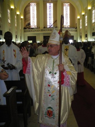 En medio de un ambiente festivo, propio de la liturgia africana, Mons. Lerma ha ratificado su respuesta a la llamada del Señor al servicio de la Iglesia, a la que ha consagrado su vida misionera, a una Iglesia pobre que mira com esperanza al futuro.