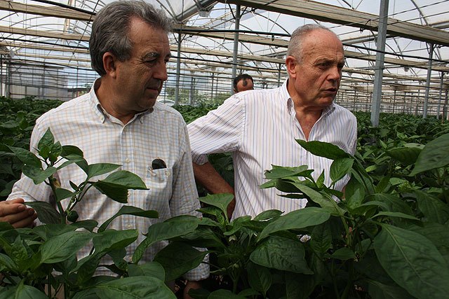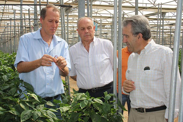 El consejero de Agricultura y Agua, Antonio Cerdá, visitó hoy diversas explotaciones de cultivo ecológico de pimiento de la zona de San Javier, donde se desarrollan nuevos ensayos para el control biológico de pimiento, dentro de las actuaciones incluidas en el programa 'Murcia, Agricultura Limpia'.