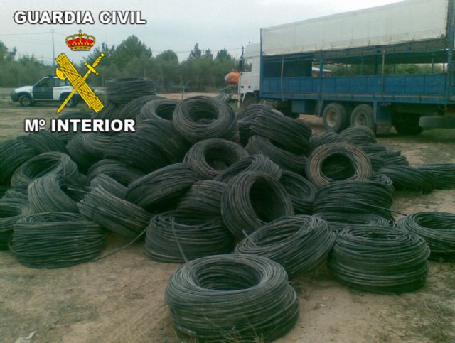 La sustracción de la manguera se produjo el pasado día 21 de los corrientes en una finca agrícola de la localidad de El Jimenado. Tras ser denunciados los hechos la Guardia Civil inició las pesquisas que se enmarcaban dentro de los servicios de prevención e investigaciones de robos y hurtos en zonas rurales y fincas, dando como resultado la localización de la manguera sustraída en una finca de la localidad de Sangonera la Seca, siendo detenidos los propietarios de la misma como presuntos autores del hecho
