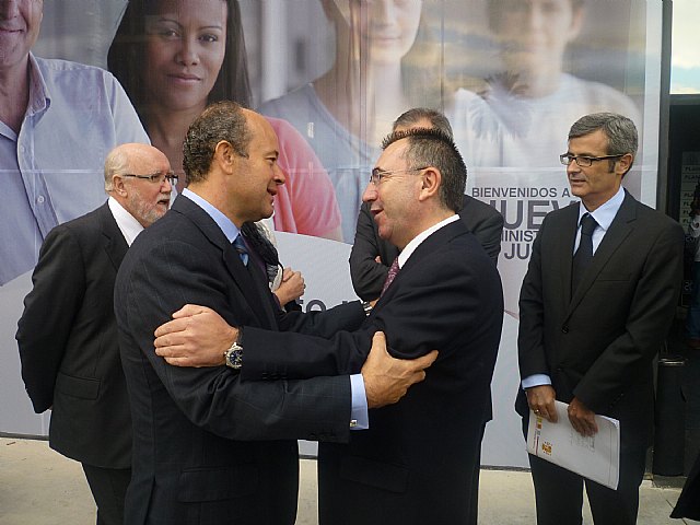 El consejero de Justicia y Seguridad Ciudadana, Manuel Campos, y el secretario de Estado de Justicia, Juan Carlos Campo, en la visita ayer a la nueva Oficina Judicial en Murcia.