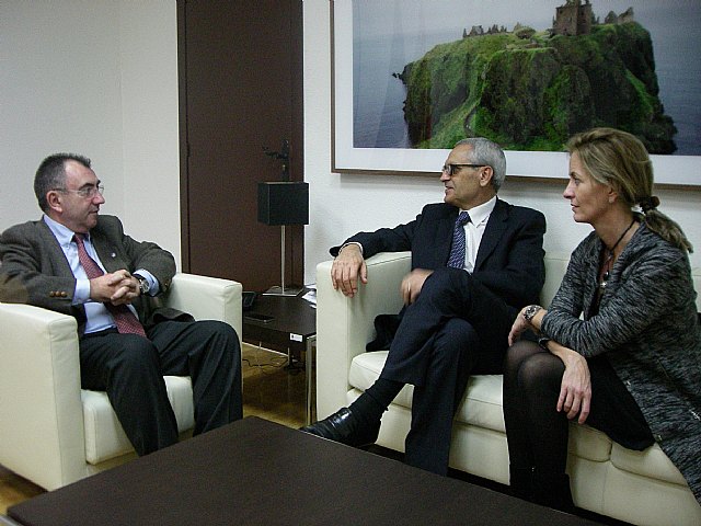 El consejero de Justicia y Seguridad Ciudadana, Manuel Campos, se reunió con el delegado territorial de la ONCE en Murcia, Agustín Aguilera, quien le explicó la problemática de las personas con discapacidad visual y las actuaciones que desarrolla para mejorar su calidad de vida.