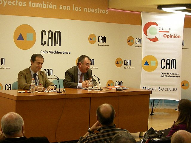 El consejero de Justicia y Seguridad Ciudadana, Manuel Campos, resaltó esta tarde los beneficios que aportará la asunción de las transferencias de Justicia a la Comunidad Autónoma en la conferencia-coloquio ‘Una Nueva Justicia en la Región’, organizada por el Club La Opinión.