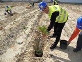 El director general de Industria, Energía y Minas, José Francisco Puche, acompañado del presidente de la Asociación de Fabricantes de Áridos de la Región de Murcia (Afarem), José García-Balibrea, participó hoy en la jornada de reforestación de la cantera de áridos 'Los Pajeles' de Lorca, en la que se plantaron 300 pinos como parte del plan de restauración ambiental de la explotación minera.