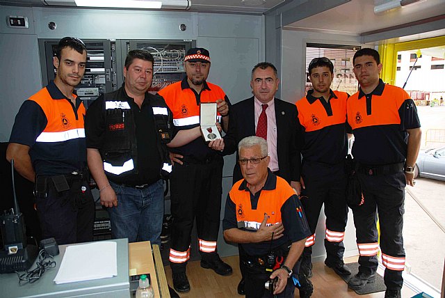 Campos visitó a los bomberos del parque de Lorca y a los efectivos del dispositivo de seguridad movilizados en el campamento emplazado en el polideportivo de La Torrecilla, tras recibir la Cruz de Plata de la Orden Civil de la Solidaridad Social en reconocimiento a la labor desempeñada desde los seísmos.