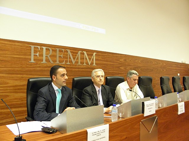 El director general de Industria, Energía y Minas, José Francisco Puche, acompañado por el presidente de la Federación Regional de Empresarios del Metal de Murcia (FREMM), Juan Antonio Muñoz, inauguraron hoy la jornada 'Reglamento de Seguridad para Instalaciones Frigoríficas', dirigida a formar a un centenar de técnicos instaladores sobre la última reglamentación en seguridad industrial con el fin de mejorar la competitividad y rendimiento de las instalaciones frigoríficas.