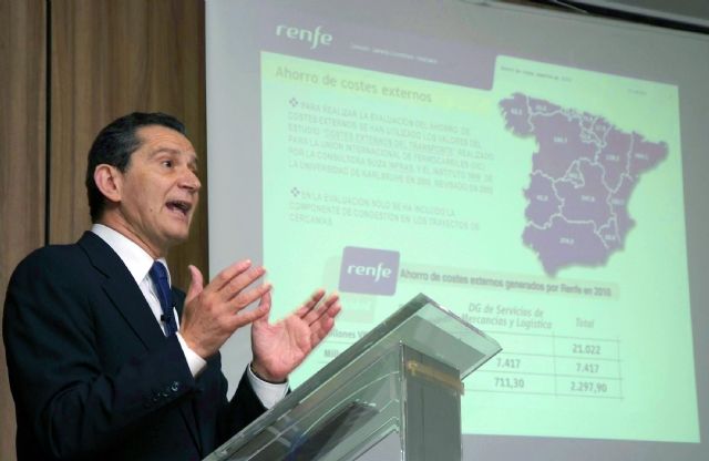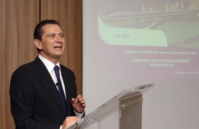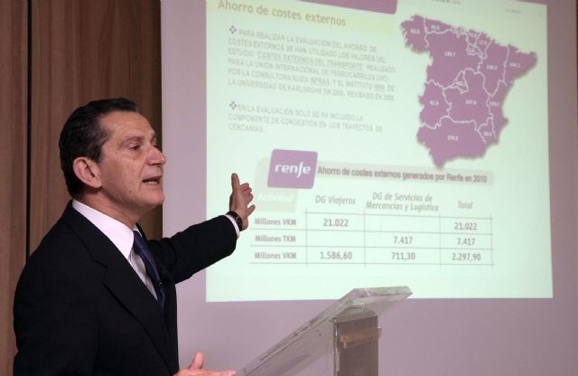 La actividad del transporte de viajeros y mercancías de Renfe en 2010 supuso un ahorro para la sociedad murciana de 26 millones de euros, si se evalúa en términos económicos el impacto sobre el cambio climático, la contaminación y la tasa de accidentes que habría tenido realizar este transporte por otros medios, como el avión, el camión o el automóvil.