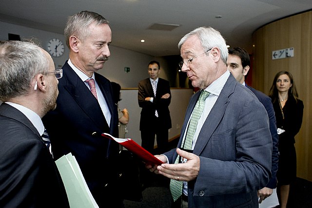 El presidente murciano entregó al responsable europeo la denominada 'Declaración de Murcia', en la que los agentes sociales y económicos manifestaron su preocupación por la posible desaparición de la parte sur de dicho corredor.