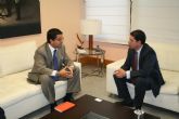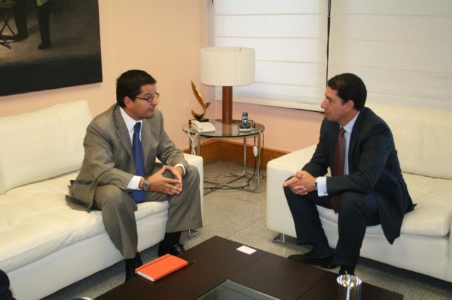 El consejero de Obras Públicas y Ordenación del Territorio, Antonio Sevilla, durante la entrevista mantenida hoy con el responsable de Relaciones Externas de la aerolínea Spanair, Javier Ortega.