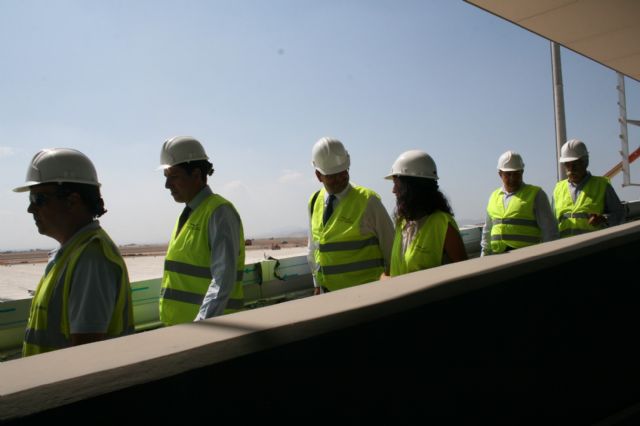 Tras la reunión, han visitado las obras del Aeropuerto Internacional de la Región acompañados por el director general de Transportes y Puertos, Jose María Bernabé, y miembros de la Sociedad Concesionaria del Aeropuerto.