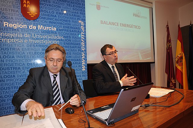 El consejero de Universidades, Empresa e Investigación, José Ballesta, presentó hoy el estudio sobre la producción y consumo de energía en la Región de Murcia, del que se desprende que el mix energético asegura el abastecimiento regional y además exporta el 36 por ciento de la energía eléctrica al resto del territorio nacional.