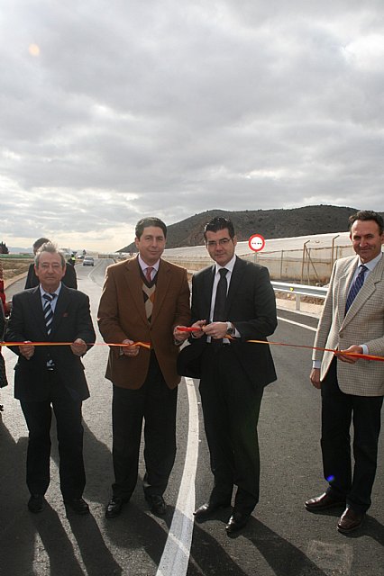 El consejero de Obras Públicas y Ordenación del Territorio, Antonio Sevilla, y el alcalde de Torre Pacheco, Daniel Madrid, inauguraron hoy la carretera RM-F27, que une la autovía del Mar Menor con Dolores de Pacheco, tras finalizar las obras de remodelación, que han contado con una inversión cercana a los 1,3 millones de euros.