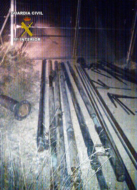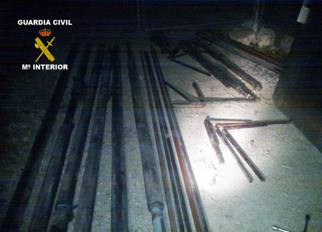 En cuanto a la otra línea de investigación, orientada a erradicar la comisión de robos en explotaciones agrícolas, la noche del pasado jueves, día 23, agentes de la Guardia Civil mientras realizaban vigilancias discretas sobre posibles objetivos de robos de este tipo, detectaron a dos furgonetas circulando hacia las instalaciones de una empresa del sector agrícola que se encontraba en proceso de cambio de sede por lo que en la finca se encontraba gran cantidad de tubos de cobre.