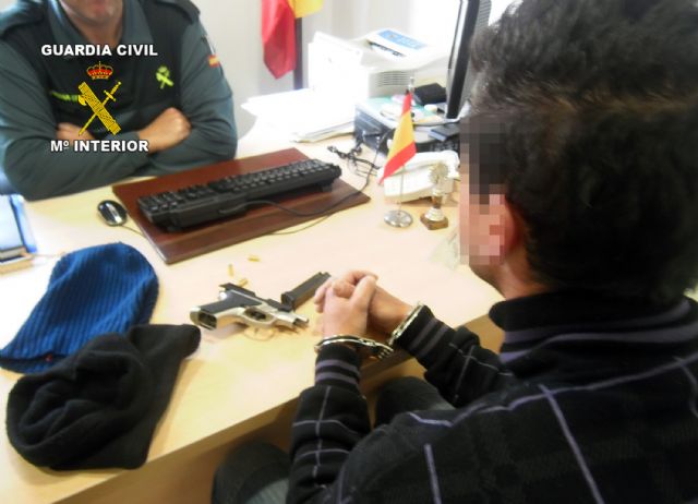 Murcia, 22 de marzo de 2012. La Guardia Civil de la Región de Murcia ha desarrollado una investigación orientada a esclarecer la comisión de varios robos con violencia e intimidación con arma de fuego en establecimientos públicos de El Algar-Cartagena, que se ha saldado con la detención de su presunto responsable.