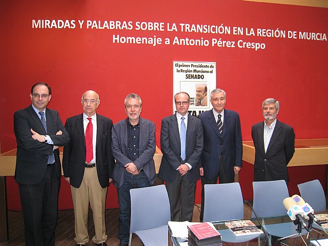 El director general de Bienes Culturales, Francisco Giménez, presentó hoy la exposición ‘Miradas y Palabras sobre la Transición en la Región de Murcia. Homenaje a Antonio Pérez Crespo’, en el Archivo General de la Región de Murcia, junto al gerente de la Fundación Cajamurcia, Pascual Martínez, al director Centro de Estudios Históricos e Investigaciones Locales de la Región de Murcia, Francisco Chacón, y al representante de la Fundación Pérez-Crespo Payá, Antonio Pérez-Crespo.