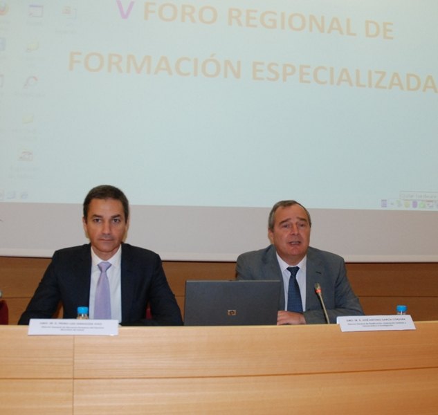 El V Foro Regional de Formación Especializada fue inaugurado por el director general de Planificación, Ordenación Sanitaria, Farmacéutica e Investigación, José Antonio García, y el director general de Recursos Humanos del Servicio Murciano de Salud, Pedro Zaragoza.