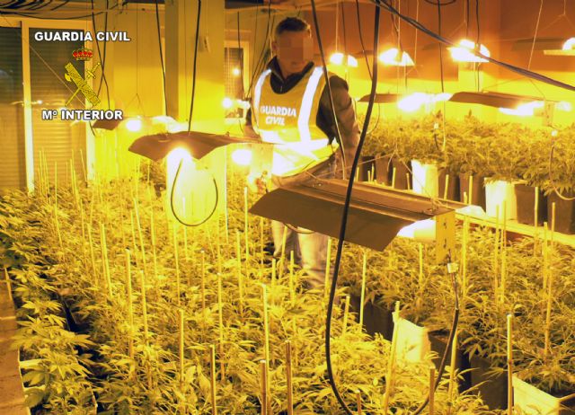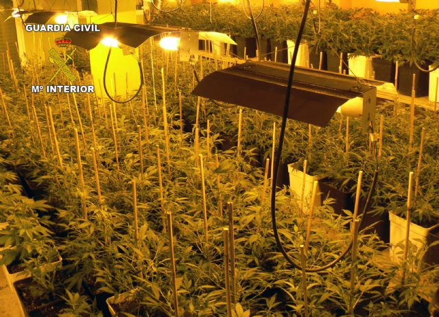 La Guardia Civil de la Región de Murcia ha desarrollado una investigación contra el tráfico de drogas en la que ha desmantelado un invernadero clandestino de producción de marihuana a gran escala en Sangonera la Seca-Murcia.