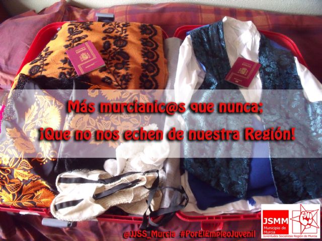 Los jóvenes socialistas han protagonizado numerosas campañas pidiendo a las administraciones regional y nacional que dejen de invertir en macroproyectos fantasma y comiencen a trabajar para que los jóvenes murcianos preparados y sin salida laboral en la región, puedan encontrar empleo y quedarse. El pasado mes de noviembre, JSRM puso en marcha una campaña que denunciaba que a los jóvenes la única salida que les queda es emigrar como hicieron sus abuelos, al tiempo que puso en marcha mociones en todos los ayuntamientos para instar al Gobierno del PP a poner en marcha, de una vez por todas, un plan de empleo juvenil.